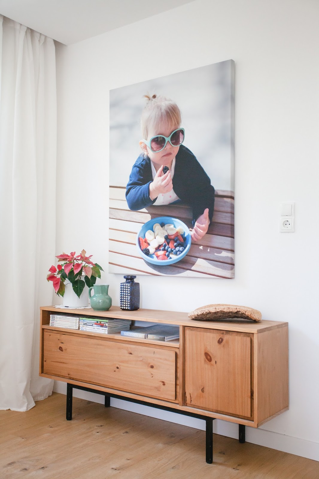 An der Wänd hängt eine Riesenleinwand von einem meiner Lieblingsmotive von Emmi. Ich muss jedesmal beim Vorbeigehen schmunzeln :-) Einfach viel zu schade, diesen Schnappschuss nur alle heiligen Zeiten am PC oder als 10x15 Bild im Fotoalbum anzusehen.
